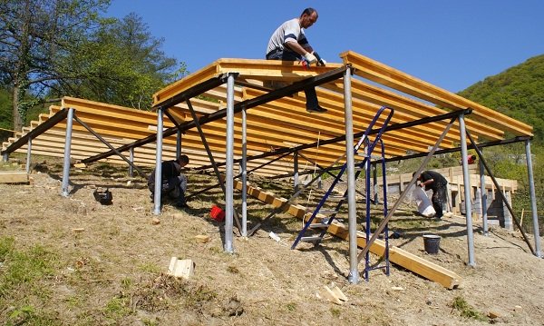 Сейчас нередко такой вид основы применим при строительстве каркасных построек и домов из СИП-панелей. Помимо этого, если использовать свои, отличающиеся трубой большого диаметра и толстой стенкой, то доступно строительство построек из кирпича или блоков.