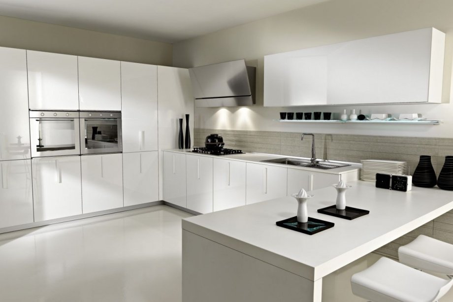 • простые формы. В том случае, если вы предпочитаете необычную, изогнутую мебель, изгибы которой довольно экстремальны, акриловые кухни – не ваш выбор. Из-за структуры пластика нет возможности экспериментировать. В любом случае, какой бы ни был интерьер помещения, он всегда будет дополнятся прямыми и строгими формами.