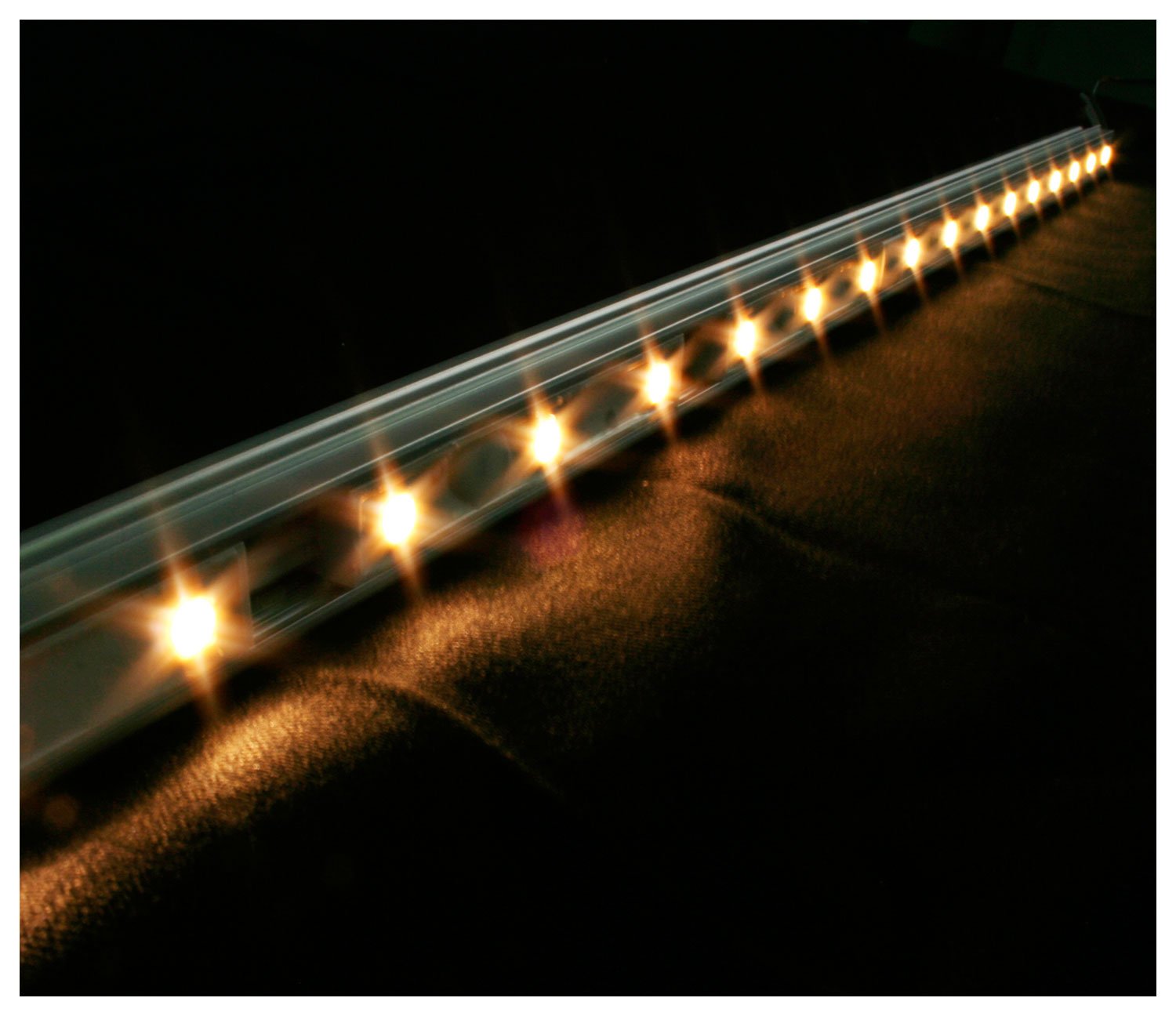 Особенность LED-линеек заключается в том, что они моментально включаются, не перегружая тем самым сеть. Для их работы требуются низковольтные источники питания. В процессе использования подобные лампы не будут нагреваться и испускать УФ-лучи, в результате чего сохраняется нормальный и естественный внешний вид продукции, а их поверхности защищаются от выгорания.