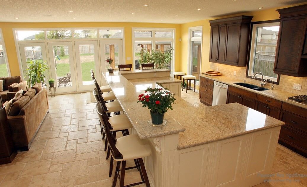 Барная стойка в просторной кухне