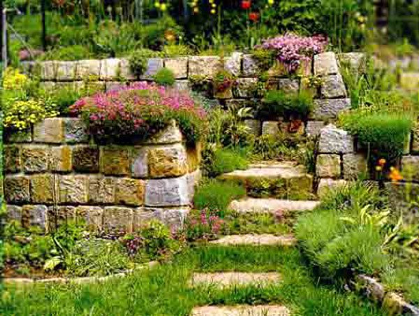 Зачастую можно встретить подпорные стенки, которые возводятся из готовых бетонных блоков. Используют и полнотелые и пустотелые блоки, выбор прямо зависит от интенсивности давления грунта на стенку. Бывает так, что для данных целей используют и деревянные подпорные стенки. Деревянные конструкции хорошо подходят для дизайнерского оформления любого сада и прилегающего ландшафта.