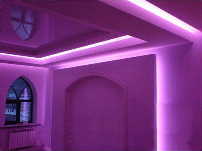 Подсветка фасадов, кухонь, рекламы и различных архитектурных объектов выполняется с помощью светодиодных лент, которые могут светиться различными цветами. Есть ленты одного цвета, а есть те, которые могут светиться тремя основными цветами, что возможно благодаря использованию специальных светодиодов.