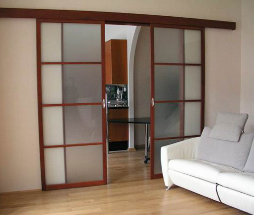 Раздвижные двери устанавливают поверх или внутрь стены. У «двери по стене» монтаж проще, главное, чтобы было место, куда отъезжать полотну. «Исчезающая в стене» - требует организации специального «кармана». Работа эта непростая и предполагает строительные навыки: необходимо разобрать стену, установить металлическую кассету («оправу», куда будет въезжать полотно) и закрыть проем гипсокар-тоном. Без опыта сделать это довольно сложно, правильнее будет довериться профессионалам.