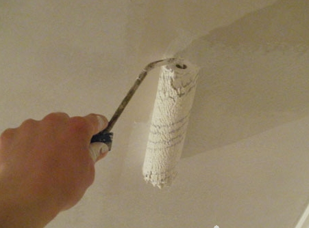 - Самая простая потолочная краска действительно мелется при проведении сухой рукой – она белоснежная и очень дешевая, разве нужны другие свойства для потолка. Это для желающих сэкономить.