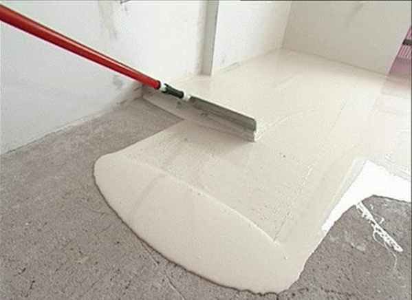 Берётся нивелировочная смесь или готовый цементный раствор в соотношении 1:3, и укладывается на основание между профилем. С помощью специальной металлической рейки заглаживаем стяжку по длине комнаты, немного вибрируя. Всю эту операцию проделываем по всем комнатам и службам. На следующий день вынуть замурованные профили и затереть образовавшиеся борозды. Стяжка готова.