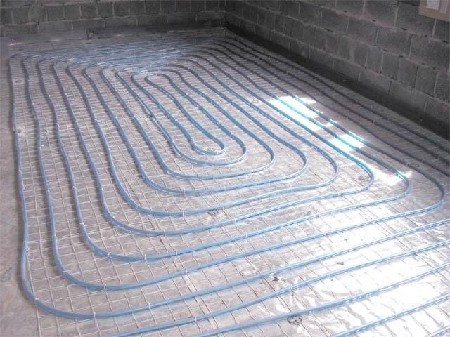 Установка на бетон требует качественной влагостойкой теплоизоляции, на которую и монтируется система труб с шагом 30-40 см.