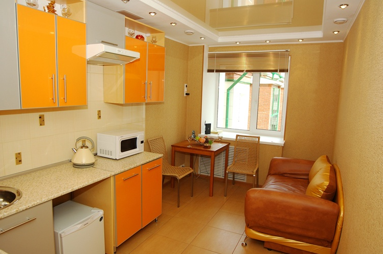 Как известно, на кухне влажность воздуха повышена, даже если установлена вытяжка. Если монтировать простой потолок из гипсокартона, или выравнивать и красить существующий, то через год, максимум два, придется обновить его внешний вид. Но об этом можно забыть раз и навсегда, установив натяжной потолок. За ним не нужно трепетно ухаживать. Главное, раз в неделю протереть его от пыли.