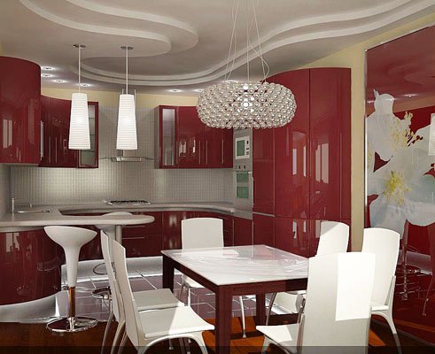 Другое дело – это внешний вид натяжного потолка, который изменит дизайн кухни до неузнаваемости. Более того, можно самому управлять данными изменениями.