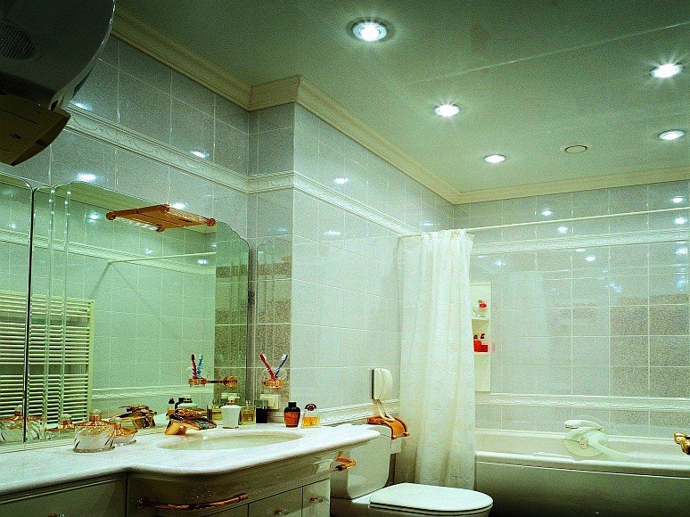 Потолок в ванной запрещено оставлять лишь заштукатуренным, его обязательно предстоит покрывать любым материалом или красить. Если используется краска, старайтесь брать специальную, которая подойдет для ванной, в противном случае материал начнет шелушиться. Фунгициды – специальные вещества, которые добавляются в состав краски. Они не дают разрастаться плесени.