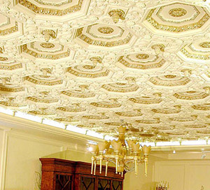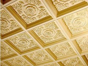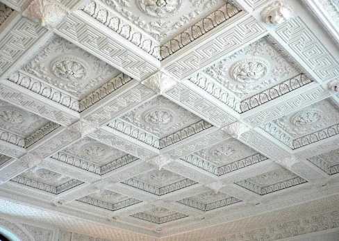 Он может быть выполнен в стиле старинных дворцов. Гипсовый потолок может также стать частью отделки помещения или здания, выполненного в современном стиле. Все зависит от того, каково назначение панелей и их внешний вид. К примеру, рельефные модели преимущественно выполняют декоративную функцию. Звукоизоляцию обеспечивают перфорированные модели потолков.