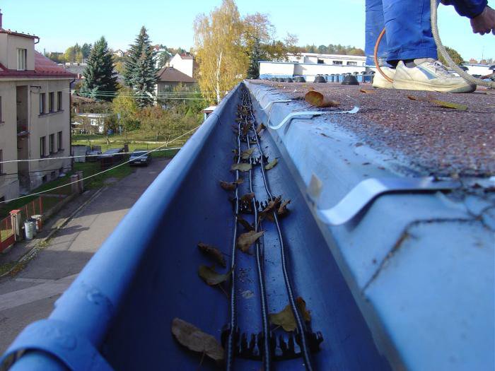 Популярным видом обогрева водосточных труб считается использование специального нагревающего кабеля, подбирающегося индивидуально под водосточную систему. Во время монтажа, как правило, учитываются максимально точные размеры кровли и все необходимые требования по эксплуатации к системе. Любой нагревающий кабель монтируется прямо в трубу водоотвода. В больших зданиях устанавливают подобную систему, оснащённую, терморегуляцией.