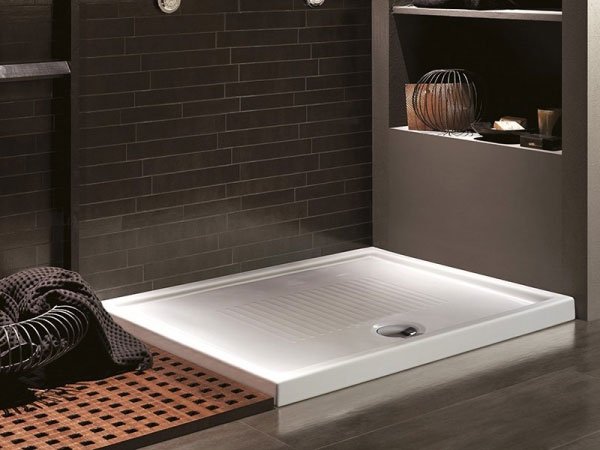 Наиболее популярными сейчас считаются душевые поддоны из акрила, которые отличаются гармоничным привлекательным дизайном, неограниченным числом форм и размеров. На данный момент доступны передовые запатентованные технологии, предусматривающие укрепление подобных изделий стекловолокном с добавлением полимерного слоя, за счет чего конечная продукция становится более жесткой. Большинство моделей комплектуются металлическим каркасом, который необходим для монтажных работ, позволяющим предотвратить возможную деформацию поддона. Из достоинств поддонов из акрила можно выделить возможность их легкой реставрации при повреждениях, быстрый нагрев материала под воздействием горячей воды и тот факт, что для их производства применяются специальные добавки, которые предотвращают распространение грибков и прочих микроорганизмов. Практичный акриловый поддон может иметь различную глубину, обладать сиденьем, мини-ванной или же быть абсолютно плоскими и монтироваться на одном уровне с полом. Если сравнивать их с поддонами из металла, то акриловые модели не требуют обязательной процедуры заземления. Толщина армирующего слоя напрямую влияет на прочность поддона, но при этом растет и его стоимость.
